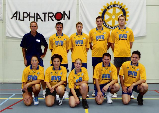 Aan het einde van de dag kon onze eigen burgemeester Rodenburg daardoor met enige trots de eerste prijs en de wisselbeker uitreiken aan de ploeg van het jubilerende BVB waarna wij met de gebruikelijke bloemen en tassen vol met hebbedingetjes van allerlei bedrijven van Rotary leden weer naar Maasland vertrokken.