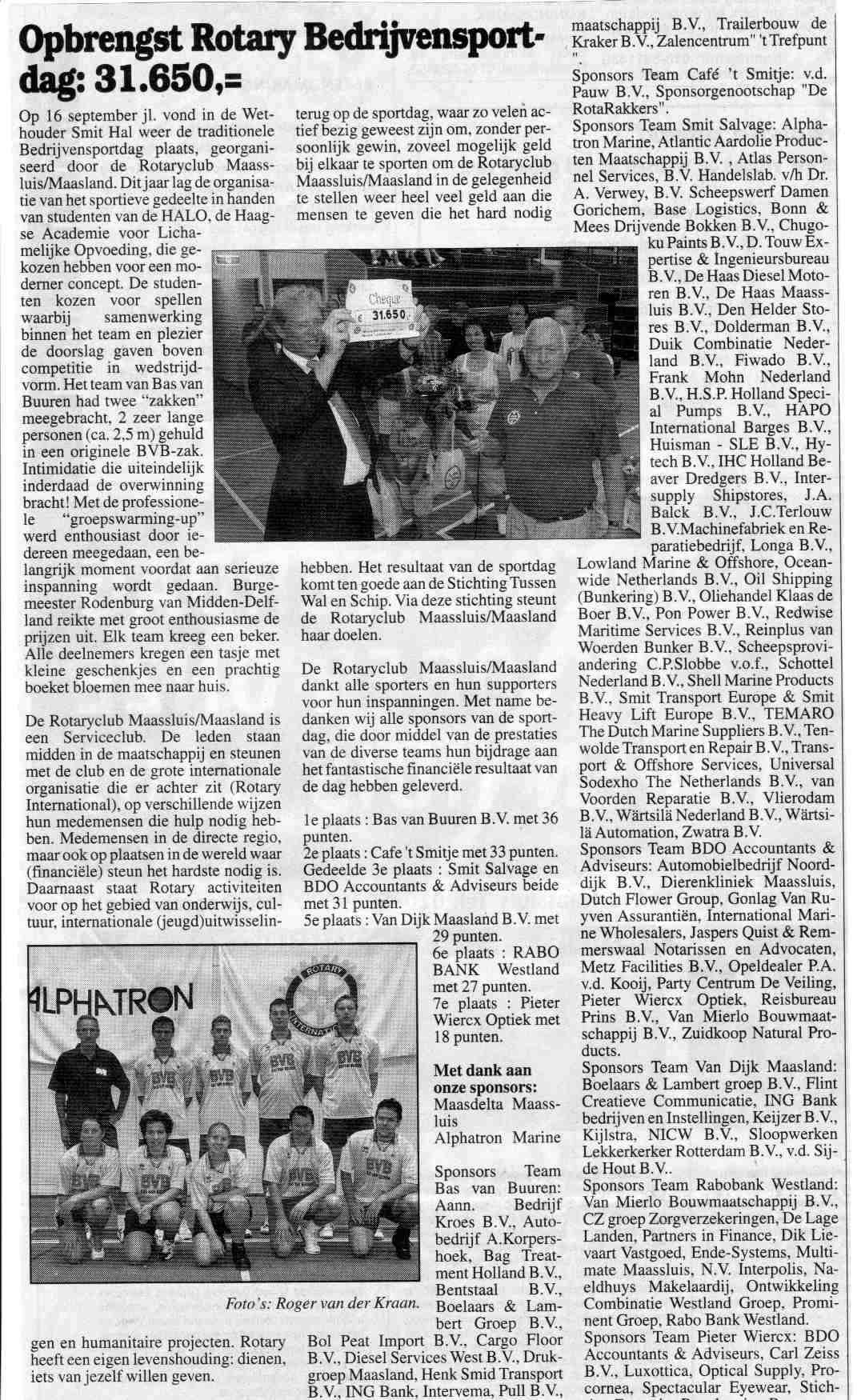 Opbrengst Rotary Bedrijvensportdag