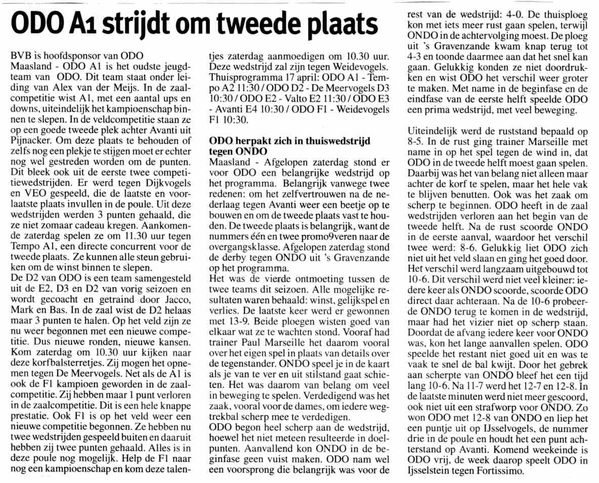 ODO A1 strijdt om tweede plaats en ODO herpakt zich in thuiswedstrijd tegen ONDO door Jaap van Vliet · 15 april 2010