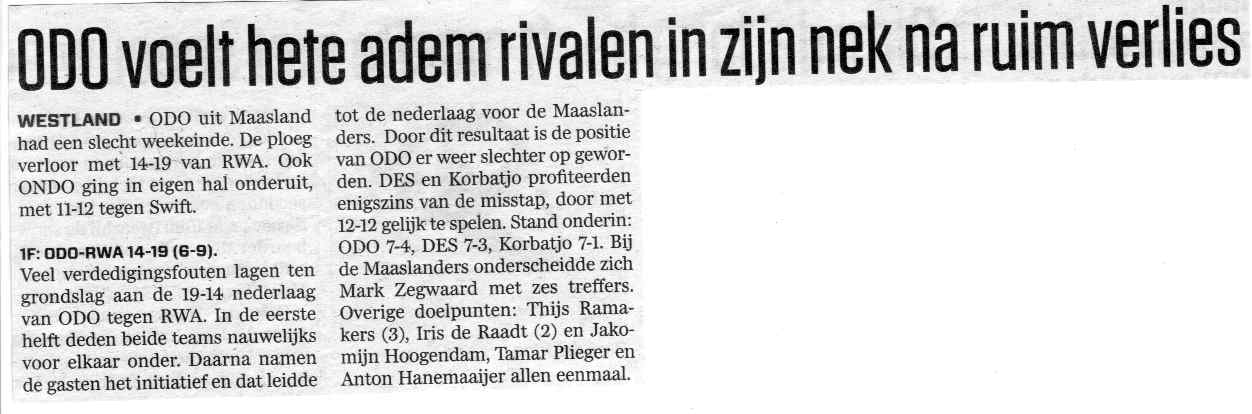 ODO voelt hete adem rivalen in zijn nek na ruim verlies (AD Westland) door Jaap van Vliet · 9 januari 2012