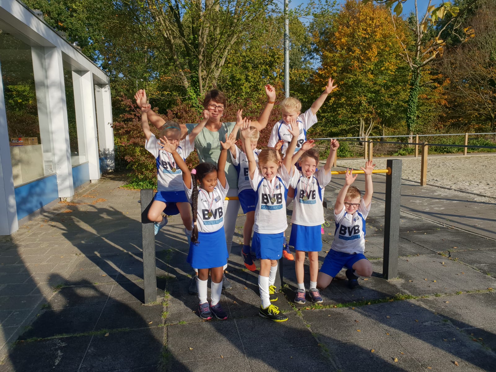 Zaterdagochtend speelden we onze laatste wedstrijd in Maassluis. We waren moe zag je, het overspelen ging moeilijker, soms vergaten we even te verdedigen, maar dan opeens was er weer een heel mooi treintje en ging de bal in een paar keer overspelen naar de andere kant van het veld. Er waren hele mooie kansen, maar niet elke bal ging er helaas in. Het is ontzettend leuk om te zien hoe knap jullie in 8 weken vooruit zijn gegaan. Er worden mooie ballen gegooid, we kunnen al heel goed verdedigen, iedereen probeert al te schieten en bij een aantal lukt het ook echt om te scoren. De wedstrijd verloren we met 4-2, maar de strafworpen hebben we gewonnen!