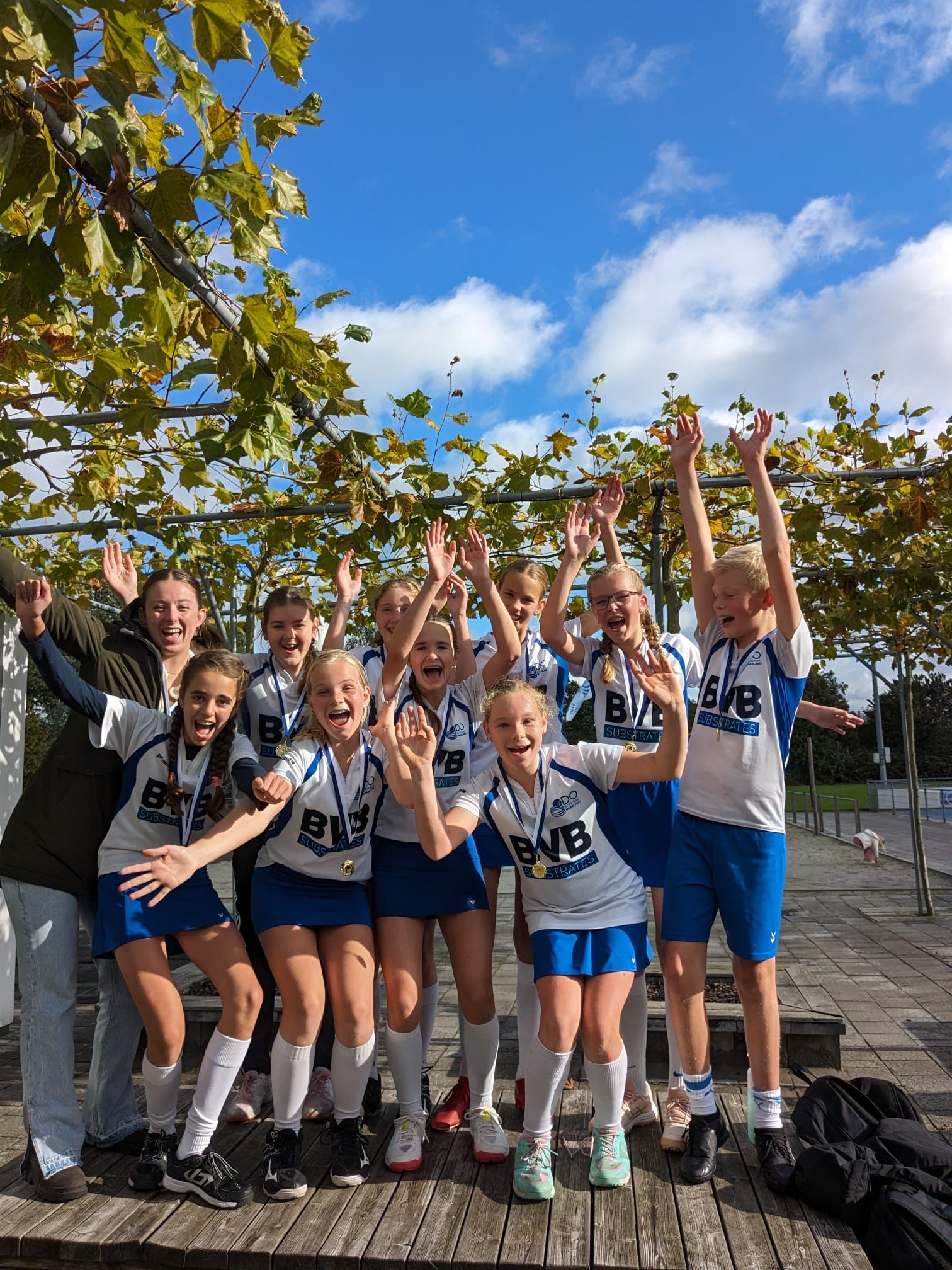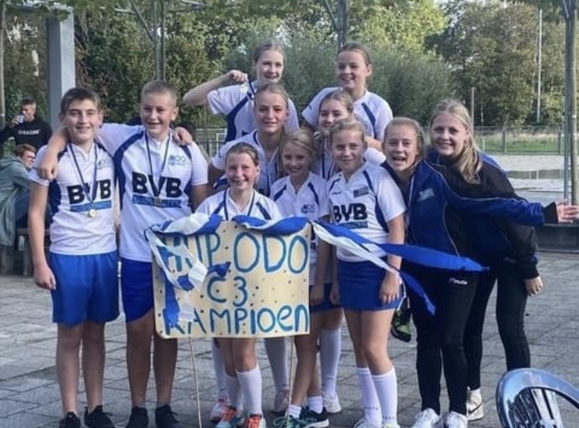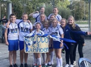 Kampioenen! door Danielle · 23 oktober 2023 Voor we weer de zaal ingaan, mochten we drie teams huldigen als veldkampioen: De E1, C1 en C3! Goed gedaan kanjers!