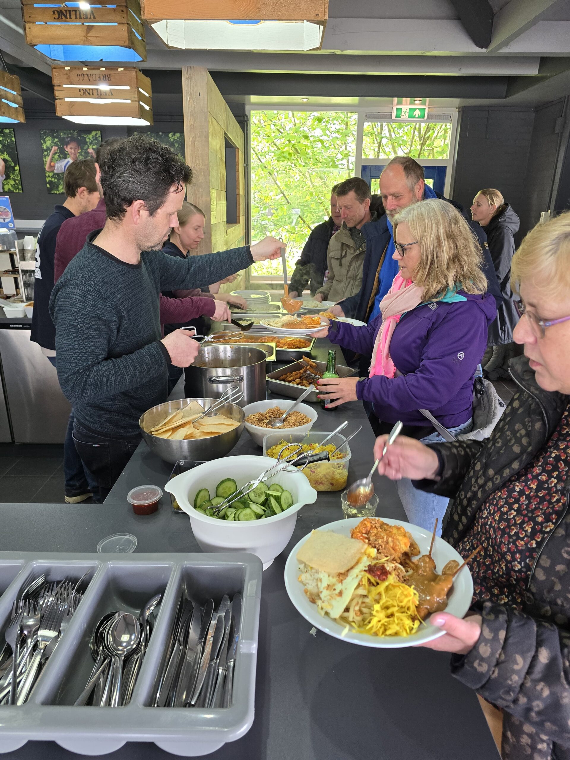 Het idee voor chinees werd geopperd door een ODO 3 nakomeling en is afgelopen week enthousiast verder uitgewerkt. Als voorgerecht konden we genieten van mini loempia’s, gevolgd door overheerlijke foe yong hai, bami en nasi van onze plaatselijke China Garden, samen met een paar stokjes saté bereid in onze oven, waarbij pindasaus, atjar, kroepoek, komkommers en augurken niet ontbraken. Als klap op de chinese vuurpijl kregen we als toetje heerlijk mango ijs met zelf gebakken chinese koekjes. Om 20 uur hadden we de kantine weer helemaal aan kant en konden we terugkijken op een geslaagde zaterdag.