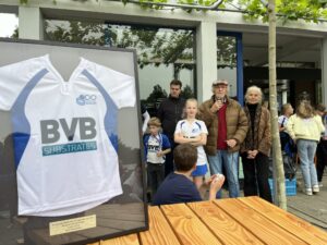 Zaterdag werden er speeches gehouden door de (oud-)voorzitters en Mart natuurlijk ook. Een ingelijst ODO-shirt werd overhandigd en Mart’s naam werd vereeuwigd door het hoofdveld te benoemen als het Mart van Buuren-veld.