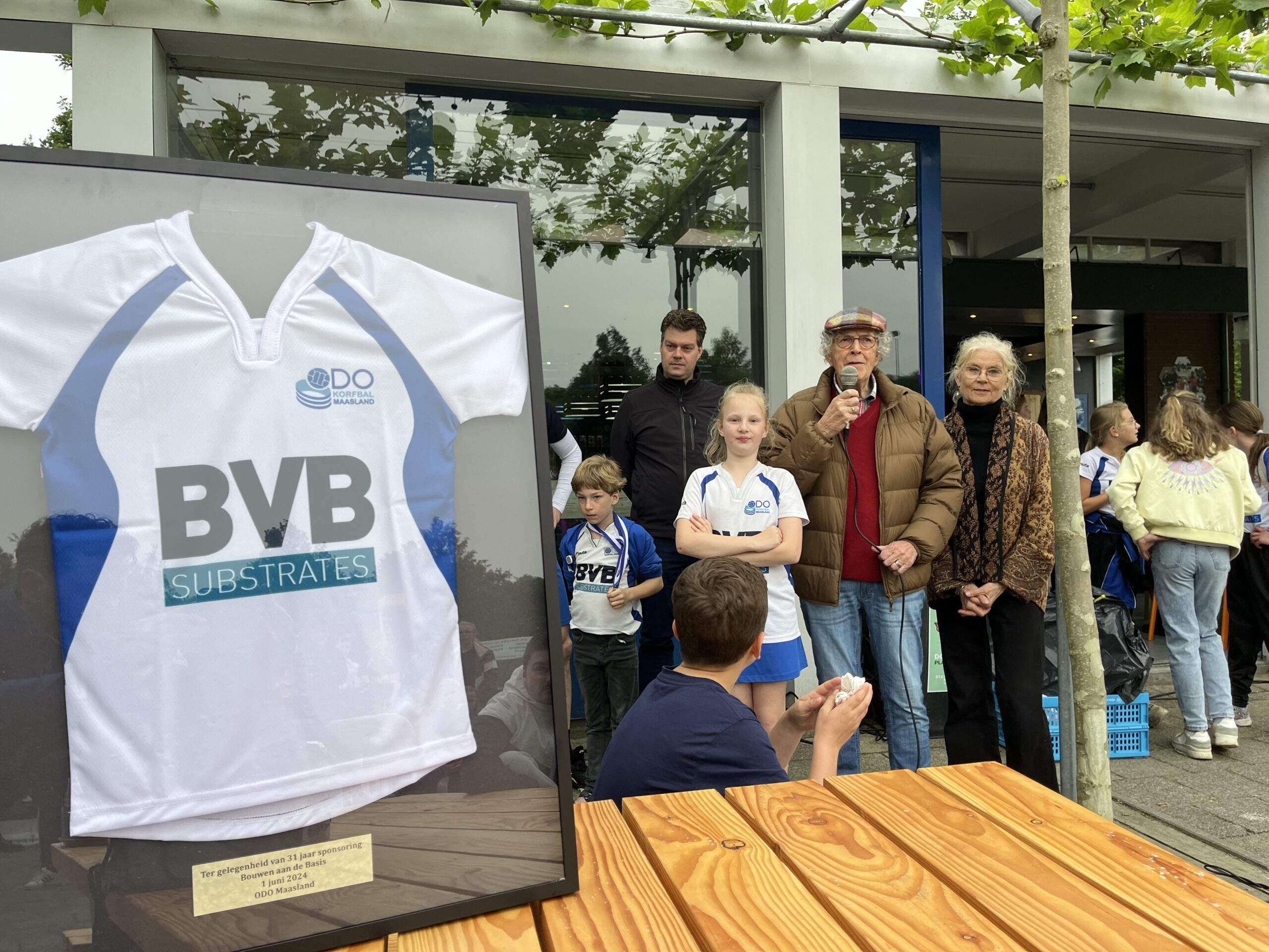 Afgelopen zaterdag 1 juni waren Mart en Coby van Buuren bij ons te gast. Mart, met zijn bedrijf BVB, heeft 31 jaar lang ODO gesponsord. Wij zijn Mart erg dankbaar! Het heeft ons zoveel mogelijkheden gebracht. Jarenlang konden wij allemaal in eenzelfde shirt sporten, die wij tegen een gereduceerde prijs konden kopen. BVB heeft het mogelijk gemaakt dat wij elk jaar de Potgrondactie hebben. En daarnaast was hij de grote promotor van het sporten van de jeugd met behulp van zijn Bouwen aan de Basis-budget en heeft hij al die tijd als consultant voor de vereniging in de achtergrond opgetreden. Vrijwilligersbeleid had hierbij zijn grote interesse. Dat is de motor waar een vereniging op draait.