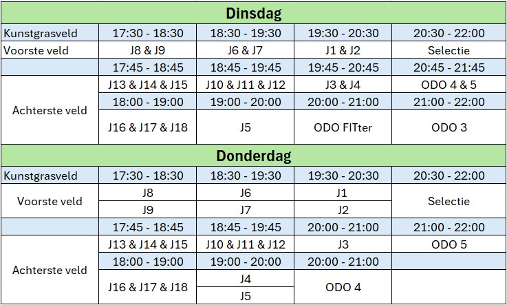 Op dinsdag 17 maart beginnen de eerste buitentrainingen weer. Hieronder is het ongewijzigde trainingsschema van voor de zaal, binnenkort wordt deze ook weer geüpload onder het kopje “Trainingsschema” op de website.
