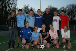 Afgelopen vrijdag was de clinic van Leon Simons, ik kan wel zeggen dat het een groot succes was! Er waren veel trainers aanwezig en ook ouders en jeugdige leden waren aanwezig om de clinic te bekijken. Met zon 30 trainers startten we in de kantine, we hebben gesproken en nagedacht over de assist (de aangeef, vanuit de korf in dit geval). Wat is het doel ervan, wat zijn de voorwaarden voor het geven van een goede assist en welke vormen zijn er om in de assist te komen. Daarna zijn we met zijn allen het veld op gegaan, er werden wat vormpjes gespeeld door de B1, met Leon Simons als coach. Daarna werden de ODO coaches geïnstrueerd en konden deze ook aanwijzingen gaan geven. Het was toch wel erg leuk om te zien hoe enthousiast iedereen was en leuk meedeed! Als laatste sloten we af met een één tegen één. Leon mocht in 25 seconden proberen te scoren tegen ieder van de B1 spelers. Dit leidde weer tot mooie acties en doelpunten, eigelijk gewoon hoe we Leon kennen!!